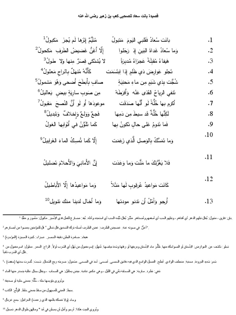 قصيدة بانت سعاد للصحابي كعب بن زهير رضي الله عنه Doc